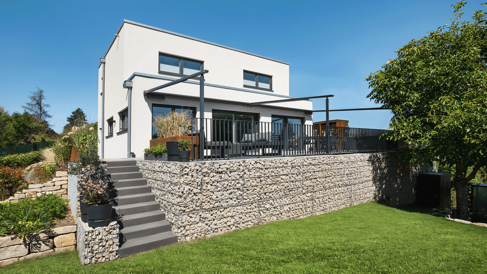 Ein Beispiel aus der Praxis verdeutlicht das Konzept: Eine vierköpfige Familie aus Luxemburg entschied sich für das Haus „Malhela“. Das Flachdach verleiht dem Objekt ein bauhausinspiriertes Erscheinungsbild mit klarer Linienführung. Das Haus fügt sich ideal in das Hanggrundstück ein und wurde mit einer weitläufigen Terrasse versehen, die einen idealen Ausblick bietet.