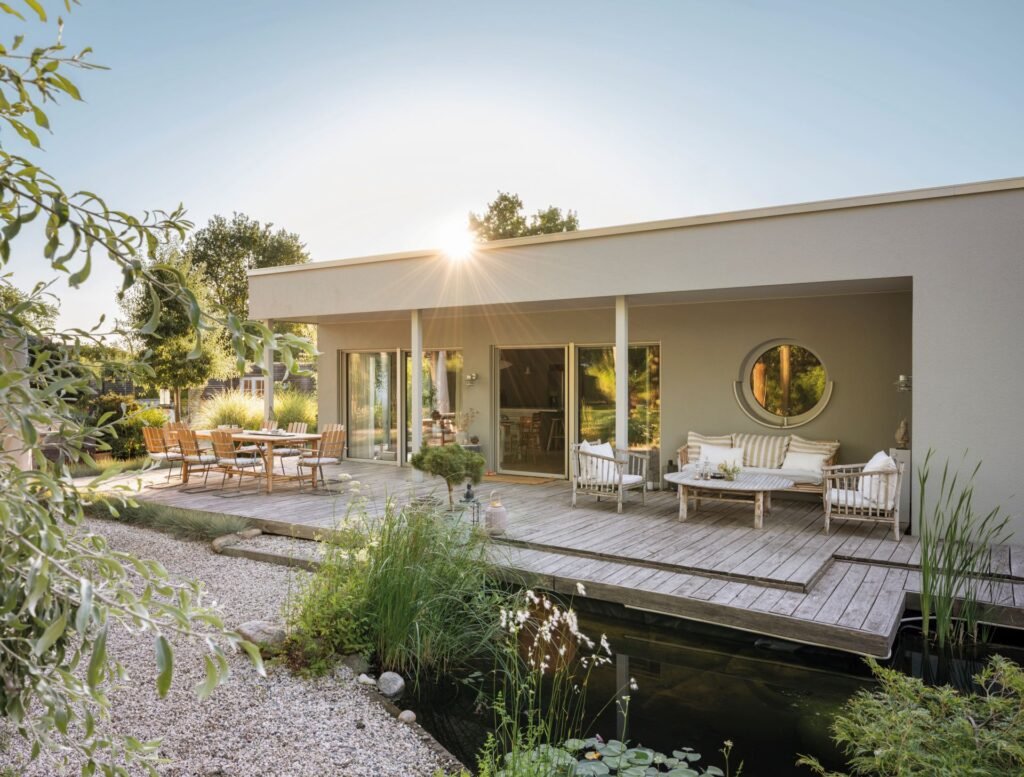 Ein Bungalow verbindet zeitlose Architektur mit hohem Wohnkomfort und barrierearmes mit naturverbundenem Wohnen, dank fließender Übergänge nach draußen. Ilka und Lutz Lehmann leben seit acht Jahren in ihrem persönlichen Traumbungalow. Inmitten eines wunderschönen Gartens bietet er ihnen den idealen Raum für ihre persönliche, kreative Entfaltung – aber auch den perfekten, sehr flexiblen Rahmen für das Zusammensein mit Freunden, Kindern und Enkeln.