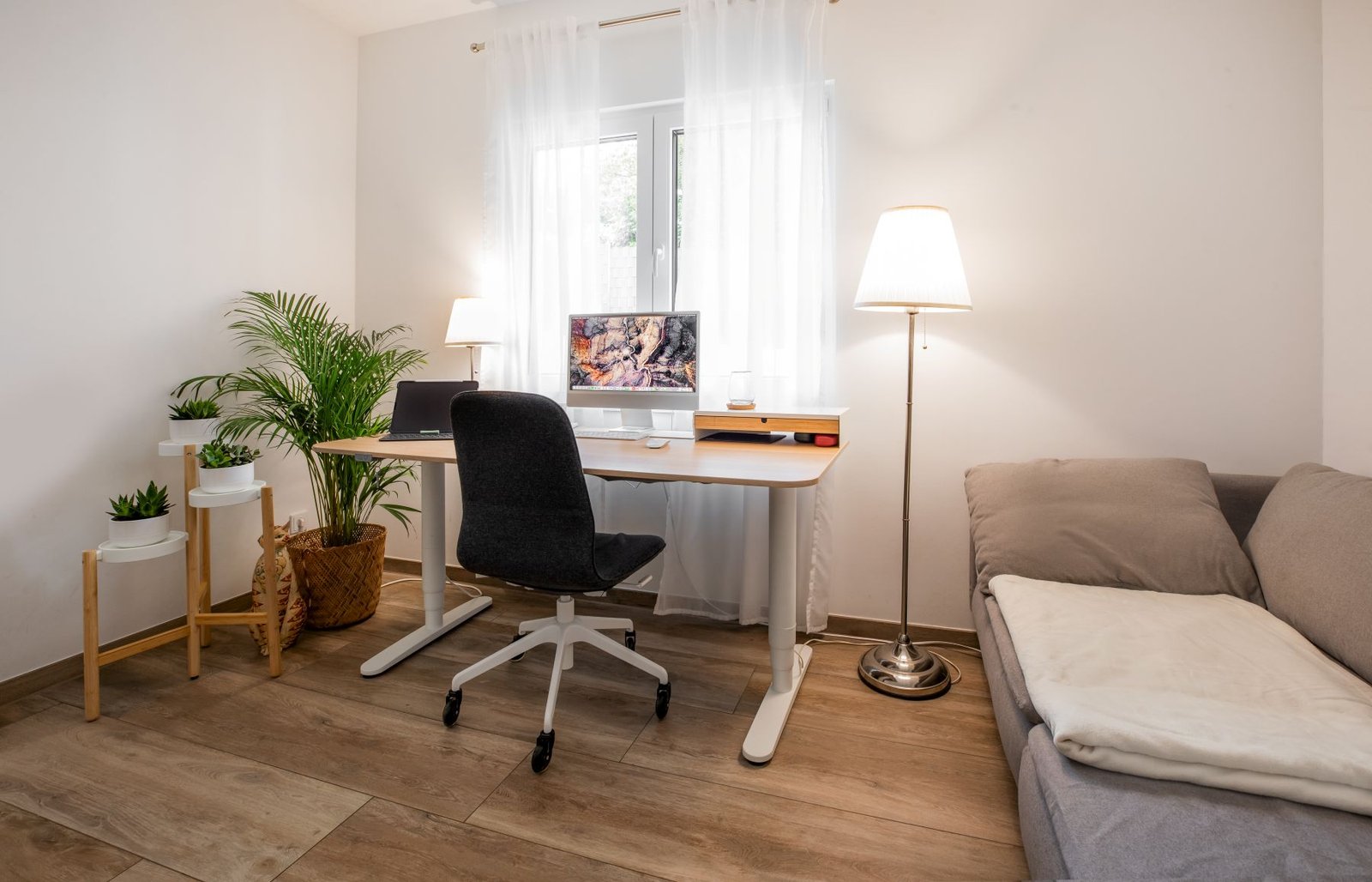 „Unser Traum war schon immer ein Bungalow, da wir Treppen und Stufen aus praktischen und später auch aus Altersgründen meiden wollten. Als ehemalige Küchenplanerin hatte ich Zugang zu einem professionellen Planungsprogramm und konnte unser neues Haus komplett vorplanen“, sagt Alena Justo Simón. Fingerhut Haus ermöglichte dem Ehepaar mit Hund gemäß der Vorplanung einen Winkelbungalow mit Walmdach, der sich durch eine durchdachte Raumaufteilung auszeichnet. Besonders wichtig war dem Paar der große offene Wohnraum mit integriertem Essplatz und Küche. Ein praktischer Hauswirtschaftsraum direkt um die Ecke rundet die Optionen für das alltägliche Leben ab. Zudem gibt es zwei identische Zimmer, die als Büro/Rückzugsraum und Gästezimmer genutzt werden. Das Schlafzimmer und das Bad befinden sich bewusst am Ende des Hauses, um eine ruhige und private Atmosphäre zu gewährleisten.