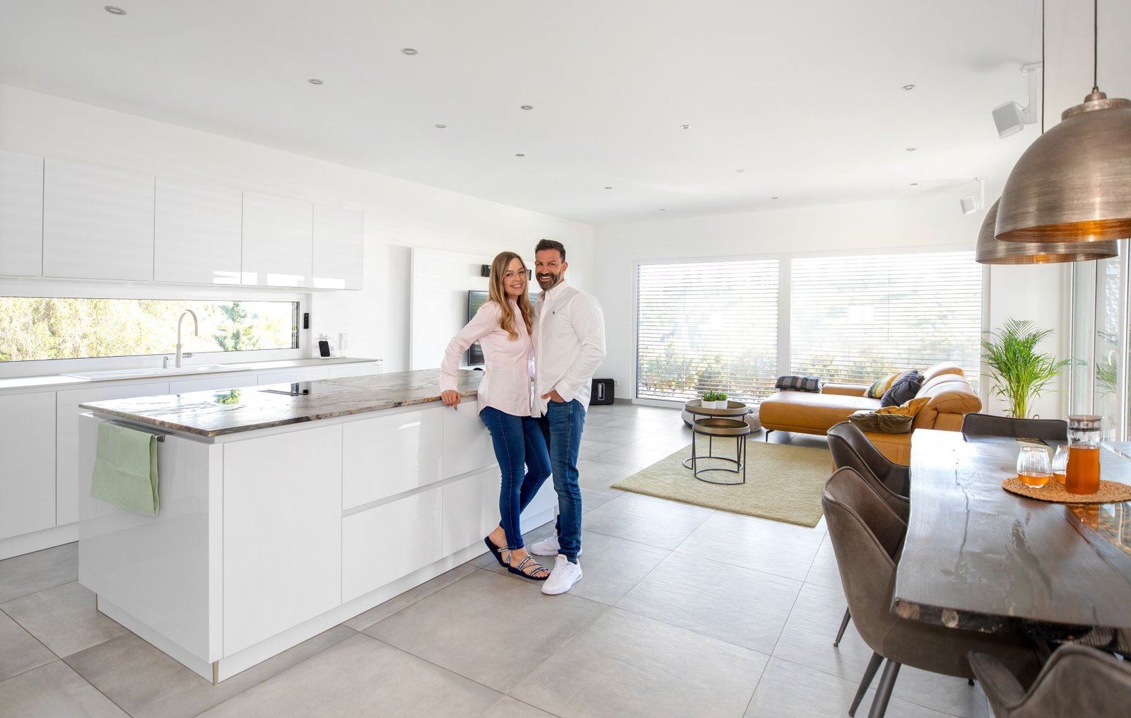 Das Ehepaar Justo Simón hat inmitten der Corona-Pandemie begonnen zu bauen. „Diese Zeit war für alle bekanntermaßen sehr stressig – doch der Ablauf in der Zusammenarbeit mit Fingerhut Haus war reibungslos und angenehm. Wir würden jederzeit wieder dem Spezialisten bauen“, sagt Marcos Justo Simón. Alena Justo Simón ergänzt: „Wir haben mit dem Walmdachbungalow von Fingerhut Haus unser Traumhaus verwirklicht. Insbesondere nach langen Reisen stellen wir immer wieder fest, wie glücklich wir sind, in solch einem schönen Haus leben zu dürfen. Die offene und helle Raumgestaltung engt nicht ein und bietet selbst bei Besuch viel Freiraum und stellt auch genug Rückzugsraum zur Verfügung. Besonders schön war es, als wir nach Fertigstellung unseres Hauses nicht mehr ‚komm wir fahren zum Haus‘ gesagt haben, sondern ‚komm wir fahren nach Hause‘.“
