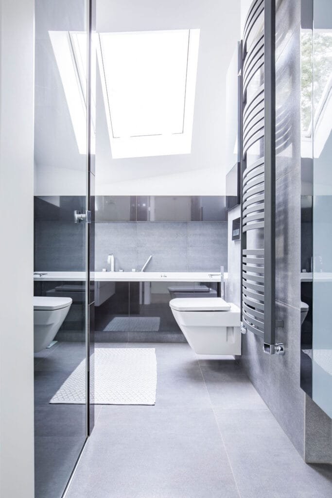 Im Badezimmer wünscht man sich in der Regel etwas höhere Temperaturen als in den anderen Räumen des Hauses. Hier ist die Ergänzung der Fußbodenheizung durch einen Heizkörper sinnvoll zum Beispiel designschöne Handtuchheizkörper. Foto: bialasiewicz/elements.envato.com
