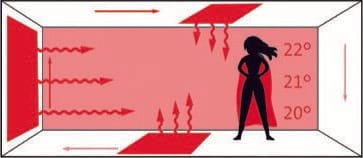 Flächenheizungen können aber nicht nur im Fußboden, sondern auch in den Wänden oder den Decken von Wohnräumen integriert werden. Strahlungswärme von der Seite, also von warmen Wänden, wirkt besonders angenehm. Die Strahlungswärme von oben wird von Befürwortern mit der Wärme der Sonne verglichen. Sie kommen dann zum Einsatz, wenn Bauherren einen besonders hohen Anspruch an die thermische Behaglichkeit ihres Hauses haben. Im Badezimmer zum Beispiel können sie als Ergänzung zur Fußbodenheizung für einen rundum warmen Raum und echtes Wellnessgefühl sorgen. Auch dort, wo der Fußboden nicht für eine Flächenheizung geeignet ist, können Wand und Decke eine alternative Heizfläche bieten: Zum Beispiel in Altbauten mit besonders schönen und erhaltenswerten historischen Fußböden.